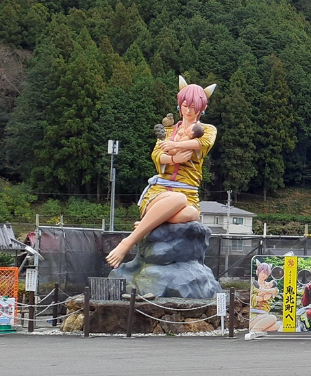 そこでもう少し足を延ばして 日吉夢産地 へ。ようやく4個だけありました。ここには鬼王丸の女性版として 柚鬼媛 なるオブジェが居ます。鬼北町は町名に 鬼 が付くので、このように鬼のイメージキャラクターを作っているのです。
