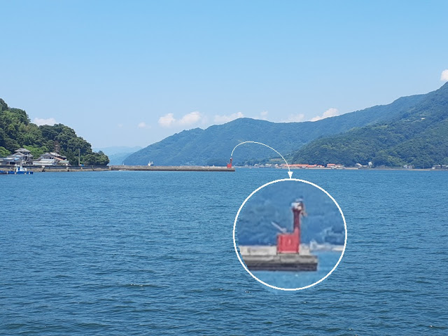 そうしてその近くにある戎山防波堤灯台にちょっとした演出が。”ここの灯台が牛鬼に似てる”という発想から、宇和島海上保安庁が うしおに灯台プロジェクト と銘打って、灯台を牛鬼にしちゃいました。遠くから見ても、あー見える見える牛鬼に!ひげには本物の牛鬼にも使う棕櫚を使って牛鬼感、出しています。
